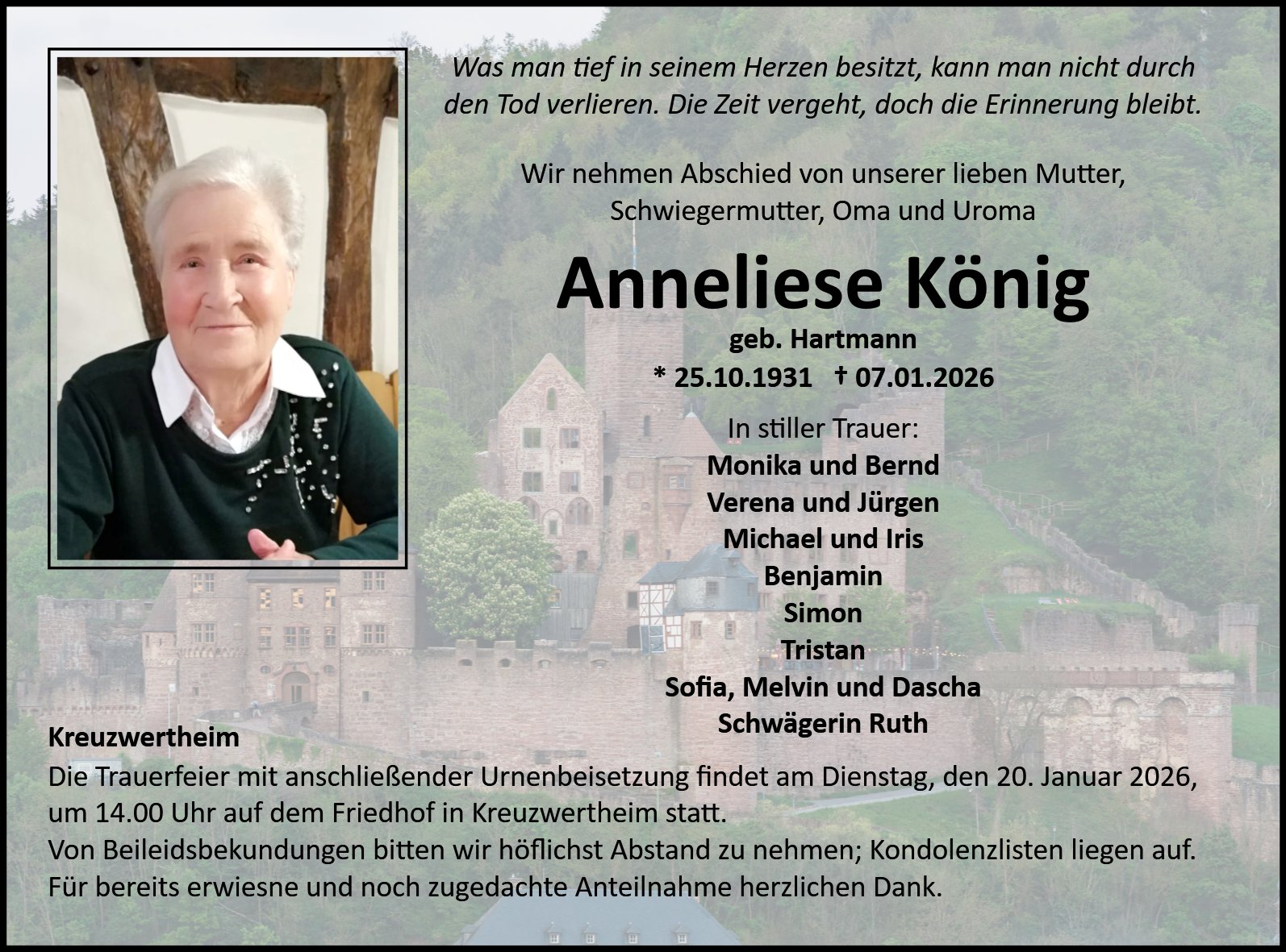 Trauerfeier mit anschließender Urnenbeisetzung auf dem Friedhof in Kreuzwertheim.