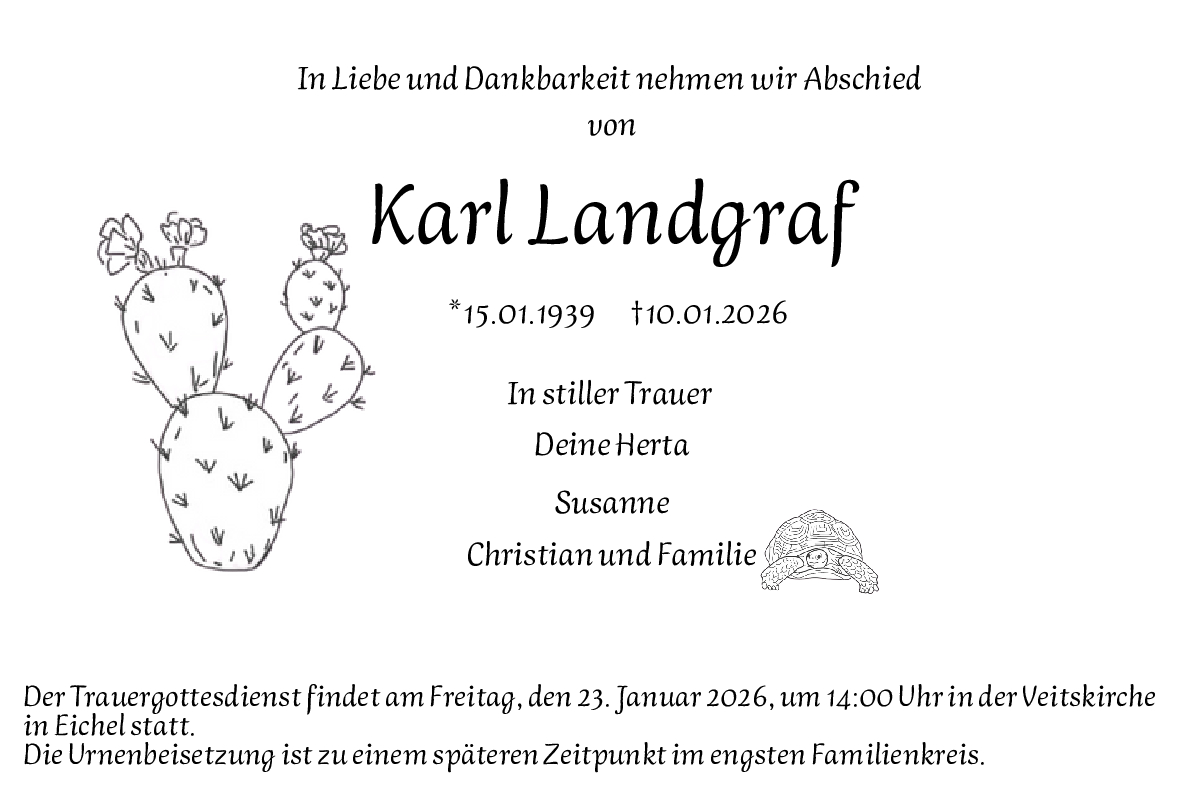 Die Urnenbeisetzung ist zu einem spรคteren Zeitpunkt im engsten Familienkreis.