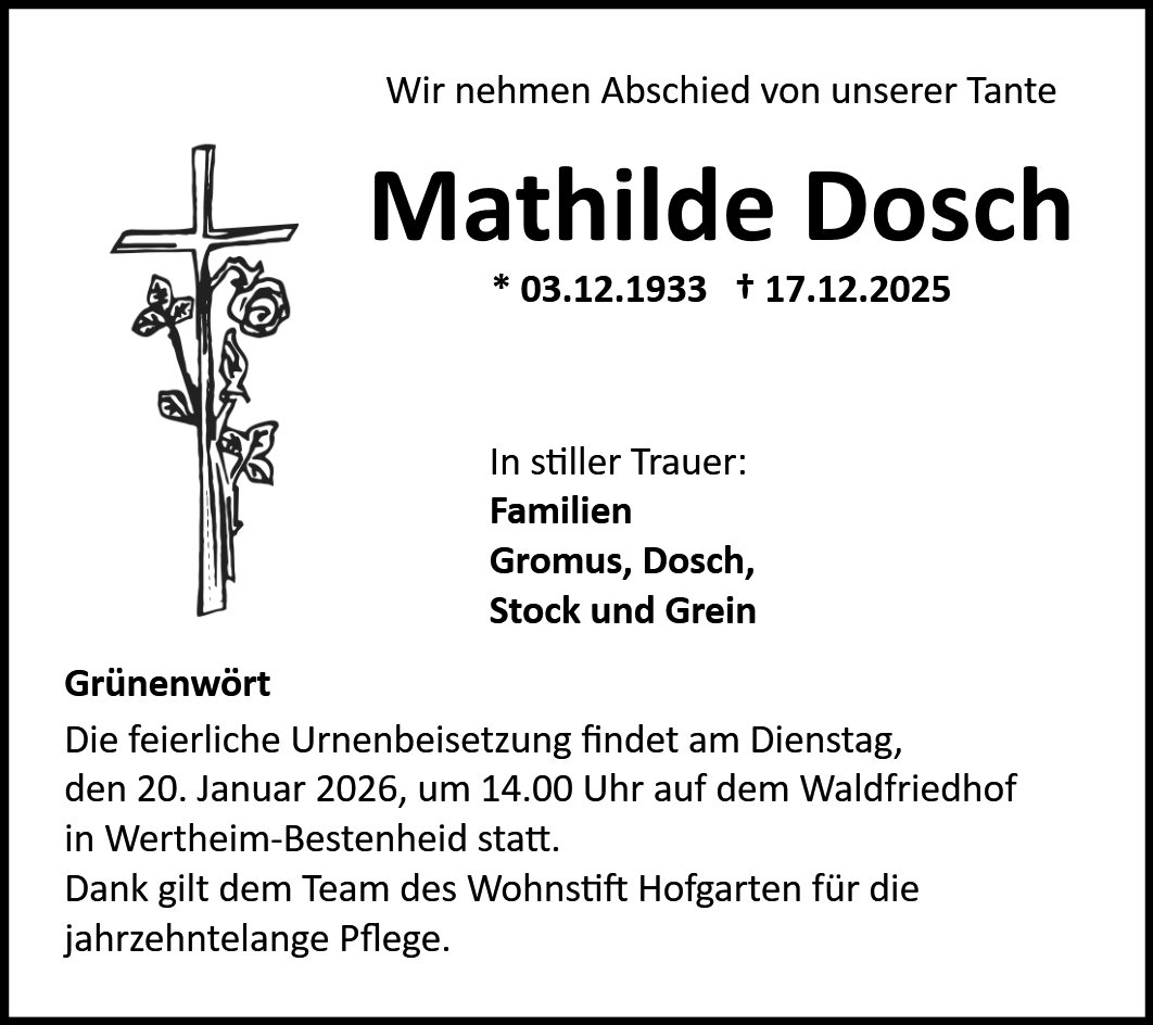 Trauerfeier mit anschlieรender Urnenbeisetzung auf dem Waldfriedhof in Bestenheid.